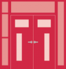 Elemento tagliafuoco a due battenti con specchiature, due laterali e sopraluce.